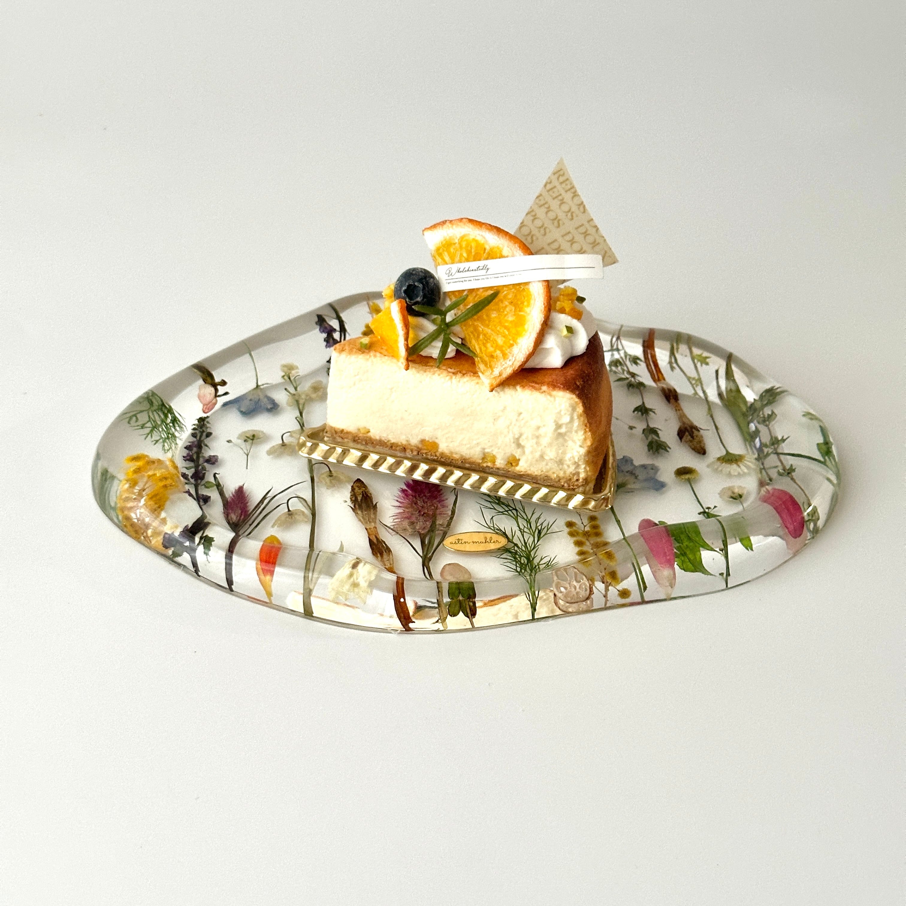 本物の植物が閉じ込められた、おしゃれなレジンのお皿